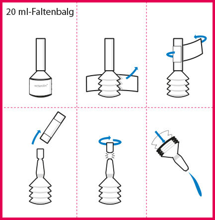 Die Wunde zuerst großflächig spülen und reinigen (z. B. mit octenilin® Wundspüllösung), um leicht lösbare Beläge zu entfernen. Anschließend die Wunde mit octenilin® Wundgel behandeln und mit geeigneten Wundauflagen abdecken.