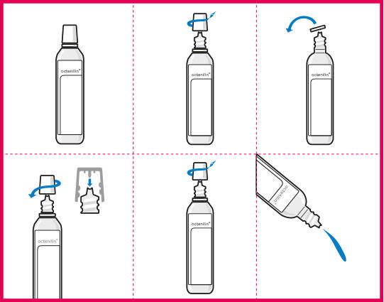 Bei jedem Verbandwechsel die Wunde mit octenilin® Wundspüllösung intensiv spülen und reinigen (octenilin® Wundspüllösung kann unmittelbar vor Anwendung auf Körpertemperatur erwärmt werden). Leicht lösbare Wundbeläge lassen sich hierdurch bereits entfernen. Zum Anlösen von Fibrinbelägen können zusätzlich mit octenilin® Wundspüllösung getränkte Verbände oder Wundauflagen eingesetzt werden. Das Produkt kann auf Körpertemperatur (ev. Wasserbad) erwärmt werden. Nachspülen ist grundsätzlich nicht erforderlich. Bei Bedarf kann die Wunde mit octenilin® Wundgel weiter behandelt werden. Im Falle einer Instillation in Kombination mit einem Unterdrucktherapiegerät nicht an Körperhöhlen anwenden.
