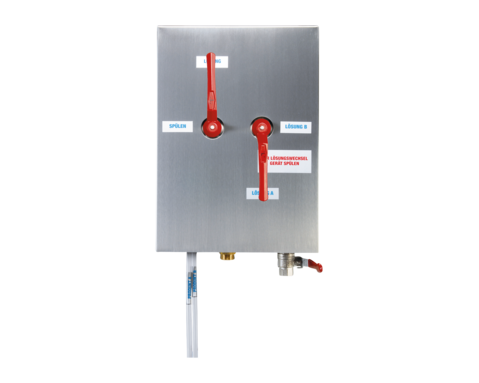 Stationäres Zumischgerät zur Herstellung und zum Verschäumen oder Versprühen von Reinigungs- oder Desinfektionsmittellösungen.