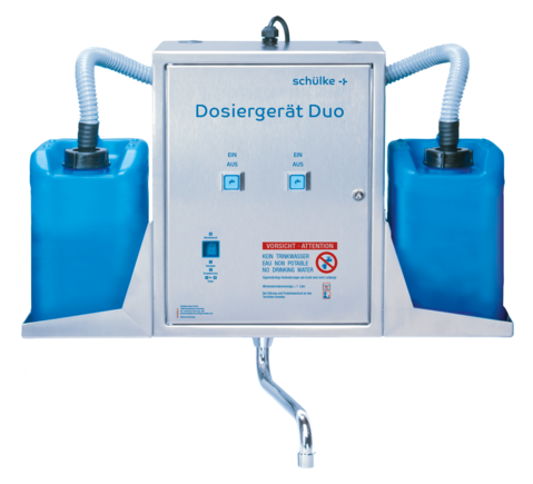 Das Dosiergerät Duo ist ein mikroprozessorgesteuertes Dosiergerät zur Herstellung von zwei unterschiedlichen gebrauchsfertigen Desinfektionsmittellösungen für die Instrumenten- und Flächendesinfektion.