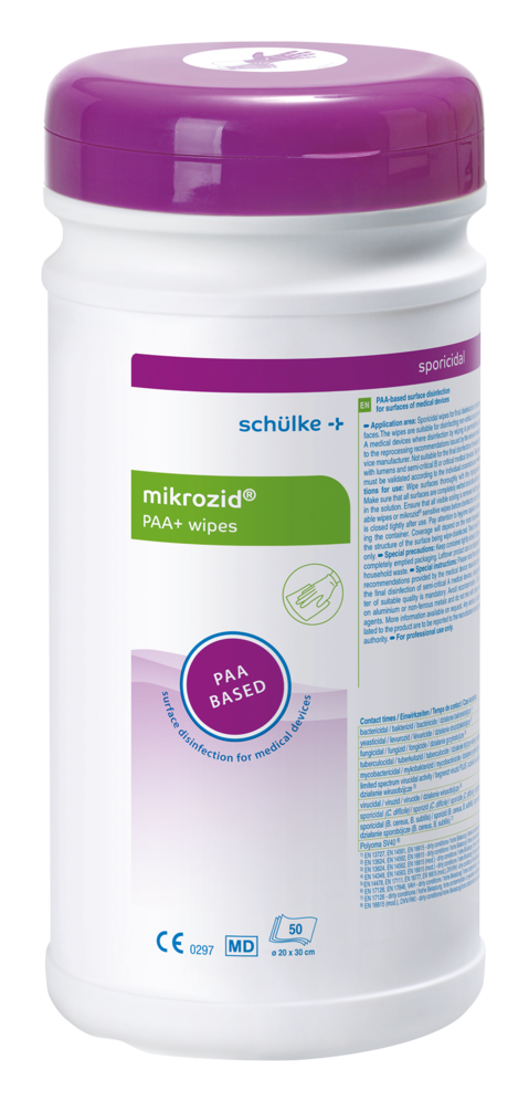 Aufgrund ihres großen Wirkspektrums und der kurzen Einwirkzeit sind die mikrozid® PAA+ wipes die idealen Desinfektionstücher für den Einsatz in Bereichen, in denen ein besonders großes Risiko der Übertragung von pathogenen Keimen besteht. Beispiele sind u. a. Isolierzimmer, OP-Bereiche, Intensivstationen, die unreine Seite in der AEMP/ Endoskopie oder auch die Neonatologie. Die Tücher eignen sich für die Desinfektion von unkritischen und semikritisch A Medizinprodukten, sofern die Aufbereitungsempfehlung des jeweiligen Medizinprodukteherstellers eine Desinfektion im Wischverfahren erlaubt. Nicht geeignet zur Abschlussdesinfektion von Medizinprodukten mit Lumen und semikritisch B oder kritischen Medizinprodukten. Die Aufbereitung ist nach den individuellen Gegebenheiten zu validieren.