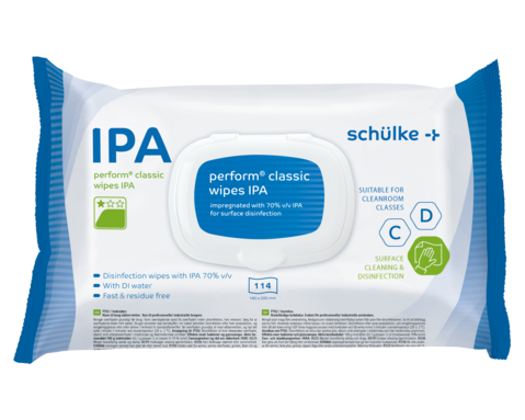 Desinfektionsmittel vorsichtig verwenden. Vor Gebrauch stets Etikett und Produktinformationen lesen. Nur für industrielle/ berufsmässige Anwender. Der in perform® classic wipes IPA enthaltene Alkohol entspricht der pharmazeutischen Qualität gemäss Ph. Eur. EU-0023656-0002 1-2