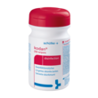 Zunächst die Hände desinfizieren und frische Schutzhandschuhe und Kittel anziehen. Bitte während des Befüllungsvorgangs darauf achten, dass die Handschuhe nicht durch andere Tätigkeiten kontaminiert werden. Aufkleber mit Haltbarkeitsdatum auf Spenderdose übertragen. Deckel aufdrehen, Nachfüllbeutel komplett in die Spenderdose stellen (ggf. zuvor passgerecht formen) und Beutelrand abschneiden. Das vorgezupfte Tuch aus der Rollenmitte ziehen, von unten in den dafür vorgesehenen Führungsschlitz im Deckel einfädeln und durchziehen. Deckel desinfizieren und verschrauben. Für Hochrisikobereiche empfiehlt schülke, auf den Einsatz von Nachfüllbeuteln zu verzichten. Ausschließlich für die Verwendung von Fachkräften bestimmt.