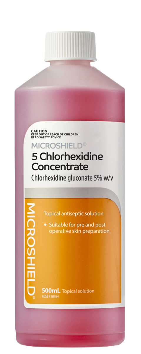 | MICROSHIELD 5 Chlorhexidine Conc 500mL | 12 / carton(s) | 70000369 | 9350279000227 |