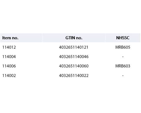 | Item | Delivery form | Item no. | GTIN |