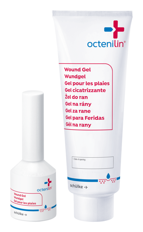 Traiter ensuite la plaie à l'aide d'octenilin® gel pour les plaies ou, le cas échéant, imbiber de gel les bandages, gazes ou compresses et les appliquer en pansement.