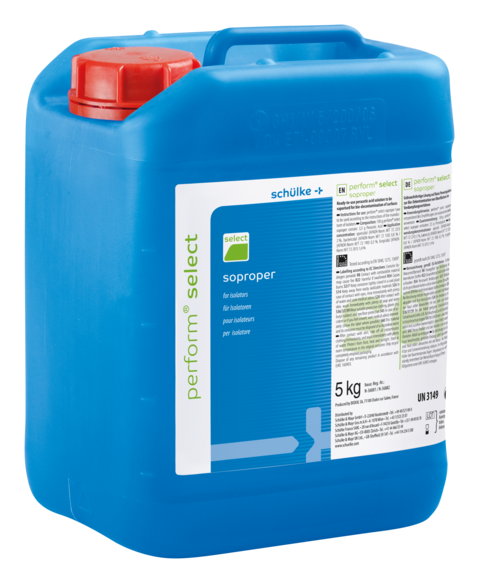 Vaporisation automatique : pour préparer la quantité de perform® select soproper®, utiliser des récipients rigoureusement propres. Ajouter la quantité nécessaire dans le volume d'eau adéquat et mélanger doucement. La vaporisation automatique doit être effectuée sur des surfaces préalablement pré-nettoyées. Respecter le temps de contact préconisé.